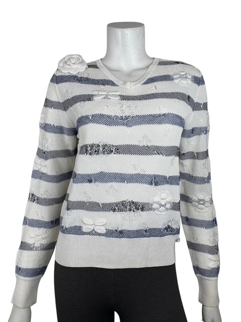 17Pカメリアモチーフ付ダメージ加工ボーダートップス¥49,000(税込¥53,900)